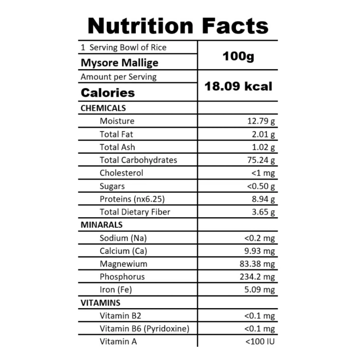 Mysore Malliga Rice is a high-protein, easily digestible rice variety with natural cancer-resistant properties. Rich in essential nutrients, it is especially beneficial for children and teenagers, supporting healthy growth and development. Light, flavorful, and wholesome, it’s perfect for everyday meals.